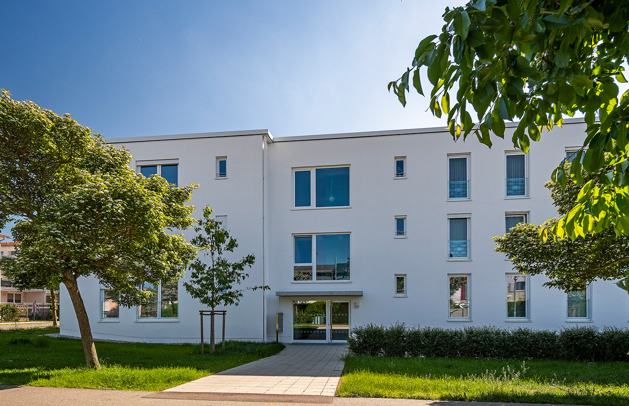 Geförderter Wohnungsbau im westlichen Bobingen gelegen zwischen Wertach und Singold. Die dreigeschossige Wohnung besteht aus zwei Dreispännern mit jeweils 9 Wohnungen. Durch Abweichungen von dem aus dem Jahr 1996 stammenden B-Plan konnte ein wirtschaftliches Gebäude erstellt werden. Der Baukörper fügt sich trotz seiner drei Geschosse gut in die umgebende Bestandsbebauung (E+I) ein.